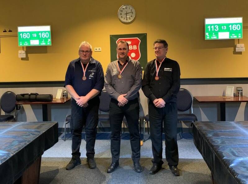 De finale ging tussen Wilfred en Geurt en werd een spannende partij. Het werd een gelijk opgaande strijd waarbij niemand het heft in handen wist te nemen. Na 21 beurten hadden beide spelers 160 caramboles gemaakt wat betekende dat penalty shots de beslissing moesten brengen.